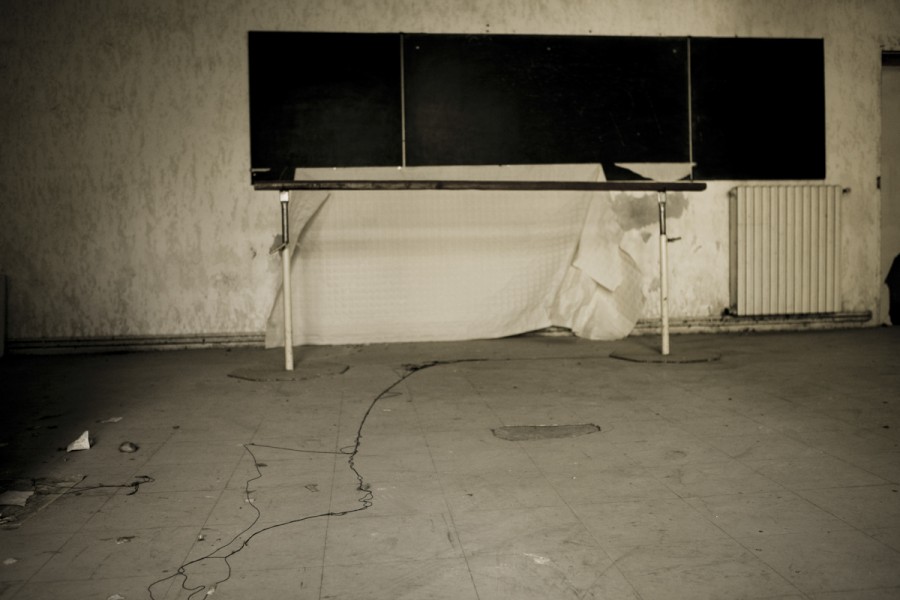Tout était sale, triste, gris mais pourtant mélancolique et vivant. Le tableau d’école, l’estrade du maître, les dessins d’écoliers, les dossiers, tout était resté intact malgré les années.